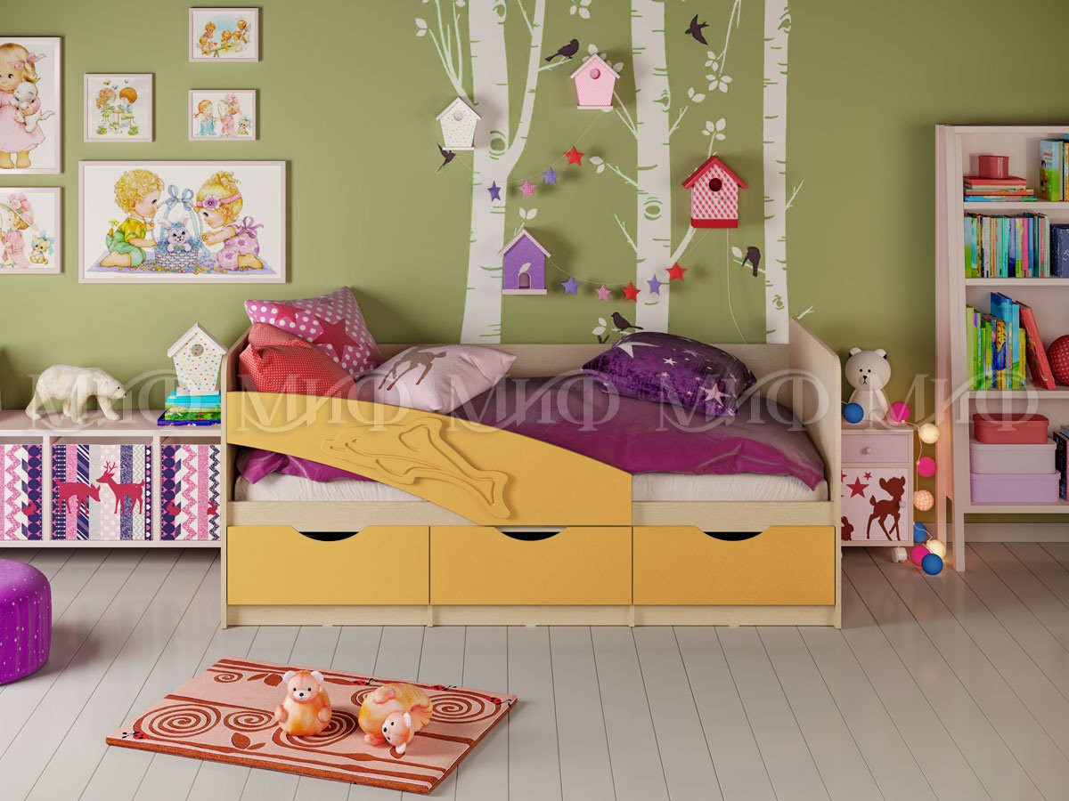 Кроватка Дельфин для Ваших детей благодаря небольшому размеру (длина 1,6м, 1.8м, 2,0 м) компактно разместится в детской комнате, и не займёт игровое пространство. Ящики под кроваткой скроют все коробочки и вещи длительного хранения. Особо радует родителей наличие бортика для безопасного сна. Корпус кроватки выполняется всегда в светлом цвете, а фасады можно выбрать. Даже внешне эта кровать выглядит очень уютной. А ограничительная планка делает ее еще и безопасной. Выбирайте любой цвет фасада для создания гармоничного интерьера.