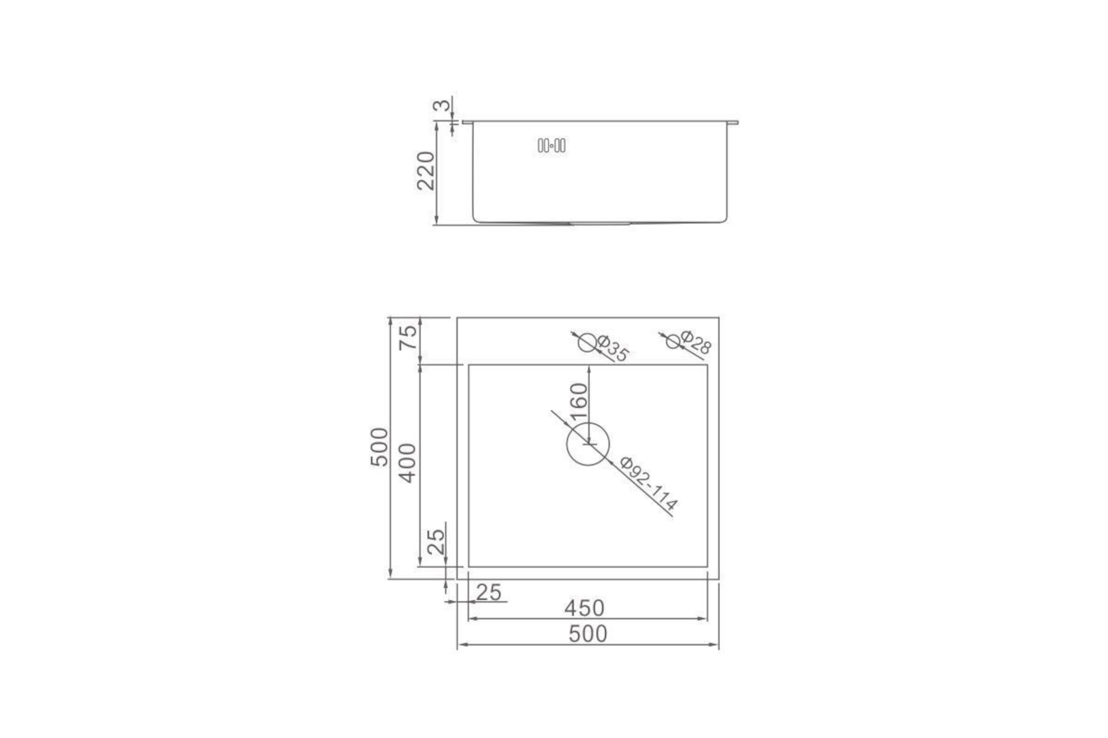 —Мойка врезная 50х50 см графит