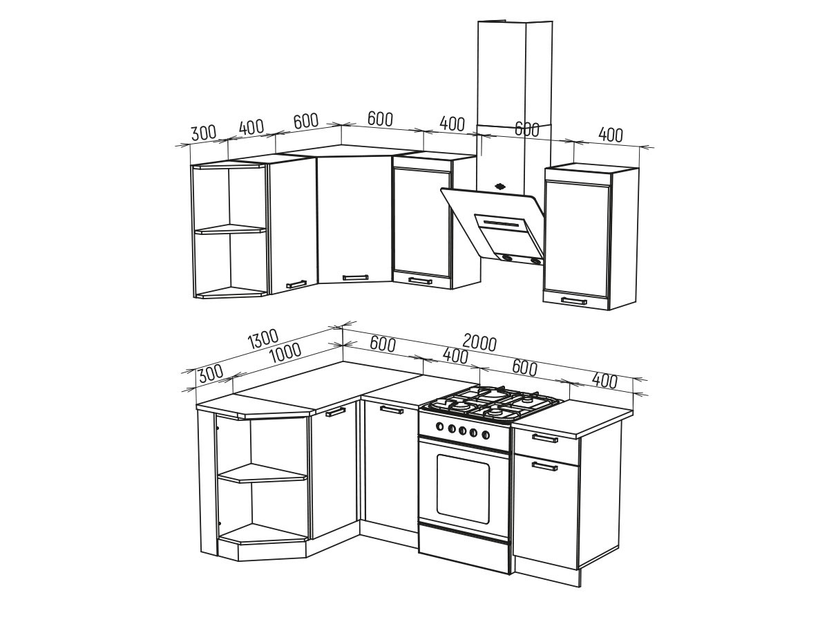 Столешница: 1000; 400; 400; 300 радиус левый.