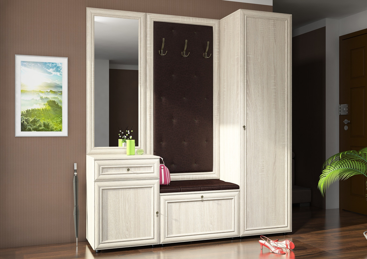 Фасад – МДФ профиль «Сонома светлая» в сочетании с МДФ вставками «Сонома светлая» (толщина 22 мм), МДФ накладка «Сонома светлая» для зеркала